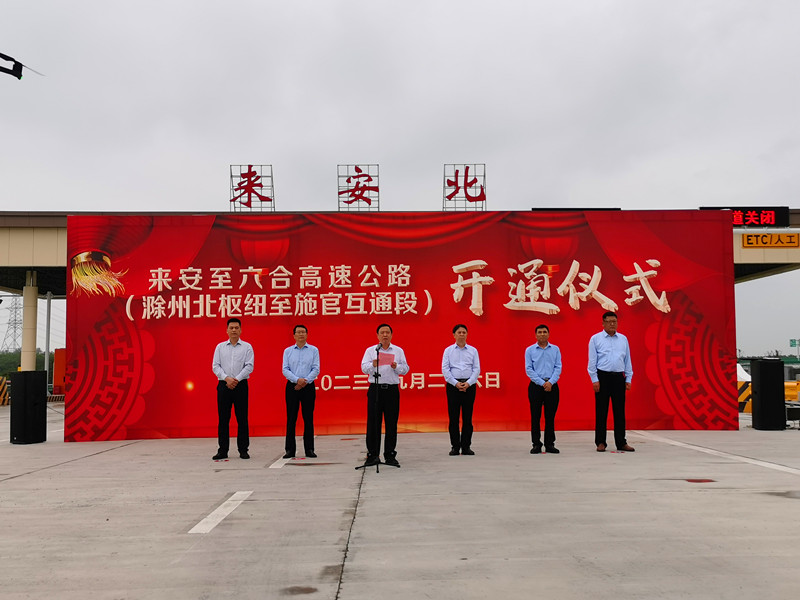 2023年9月26日上午,來安至六合高速公路滁州北樞紐至施官互通段通車儀式在來安北收費(fèi)站舉行,來安縣縣委書記楊軍、市城投集團(tuán)黨委書記周傳錦、市城投集團(tuán)黨委委員、副總經(jīng)理高國先、來安縣交通運(yùn)輸局局長徐濤、滁寧公司董事長王燦、來六公司董事長陳義兵出席本次儀式。